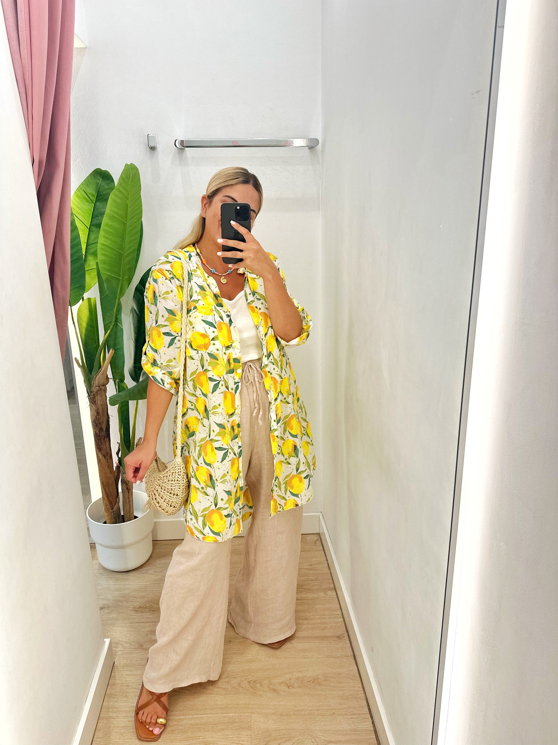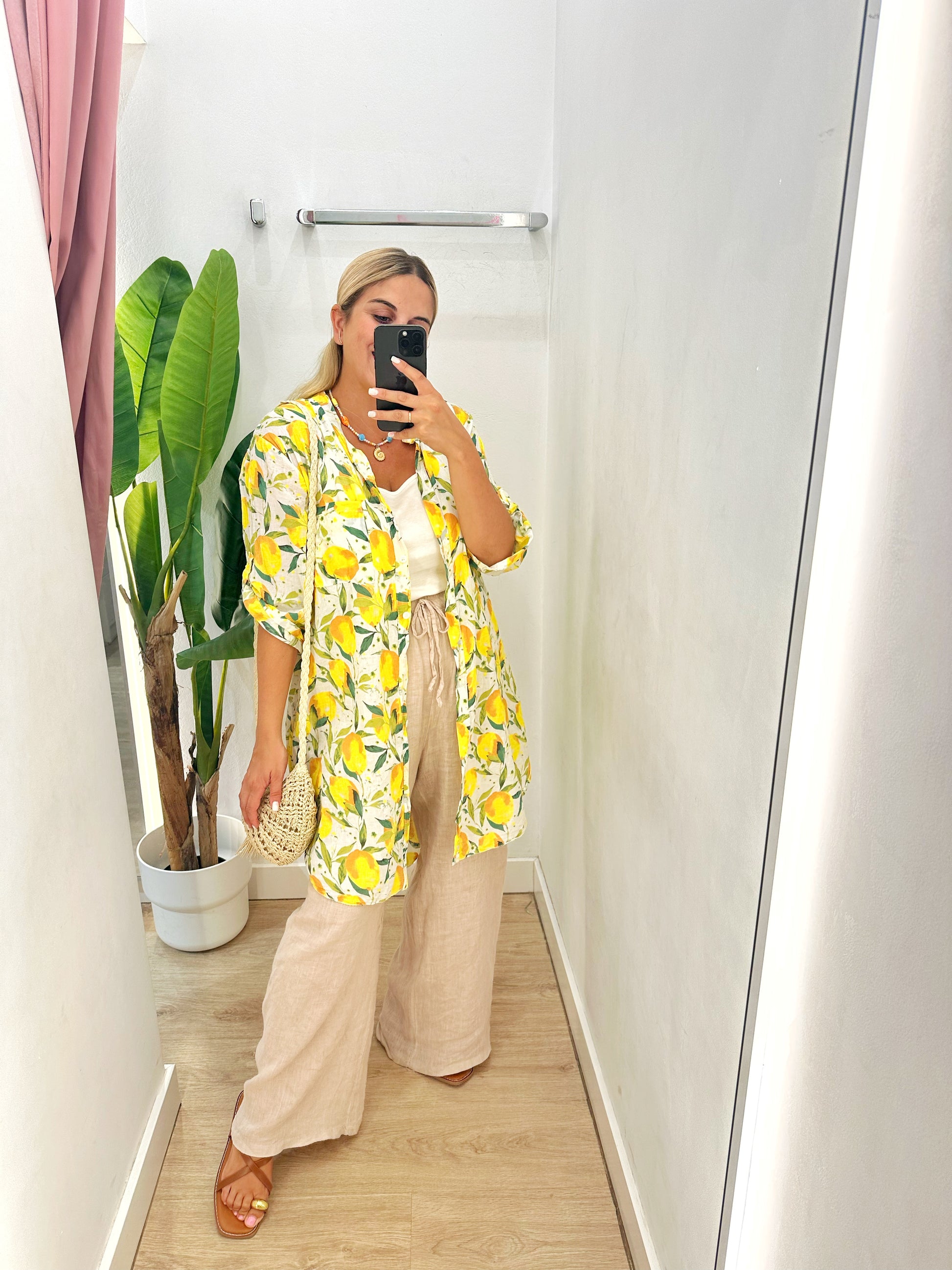 Vestido camisero o sobrecamisa limones